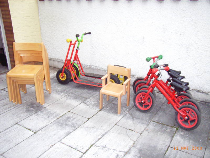 Durchgestoßene oder nicht vorhandene Griffe, Gratbildung an den Lenkerenden. Sattel am unteren Anschlag der Führung und locker. Lenkung hakelig. Starkes Seitenspiel der Räder. Verschlissene Konen der Radzentrierung. Eingelaufene Achsen. Kunststofffelgen zerbrochen.