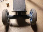 Der Roller hat ein höhenverstellbares Lenkrohr mit angeschweißtem Lenker ( D:22mm ). Das Chassis besteht aus einem Rohr, an das eine Trittbrettaufnahme angebracht ist. Hinten ist ein Querrohr angeschweißt, das die Hinterachse ( D:8mm ) hält. Die Hinterachse wird über Plastikkappen zum Querrohr zentriert. Die Räder sind von Rollerskate-Qualität, die Lagerung auf der Achse geschieht mit Kunststoffbüchsen.