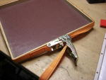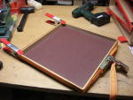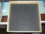 Legebretter für alles, was auch immer gelegt werden muß. Auf jeden Fall fällt nichts herunter, was daraufgelegt wurde, da ein Rahmen aus Leiste das Legebrett umschließt. Vielleicht kann man auch heute etwas legen, was morgen weitergelegt werden soll. Da die Legebretter eigentlich als Transportverpackung für Weihnachtsdekoration gedacht waren, waren sie nicht sonderlich stabil und die Verleimungen der Leisten rissen auf. Passiert natürlich dann, wenn ein belegtes Legebrett nur mit einer Hand hochgehoben wird, da sich die Konstruktion inklusive Gelegtem verwindet.
